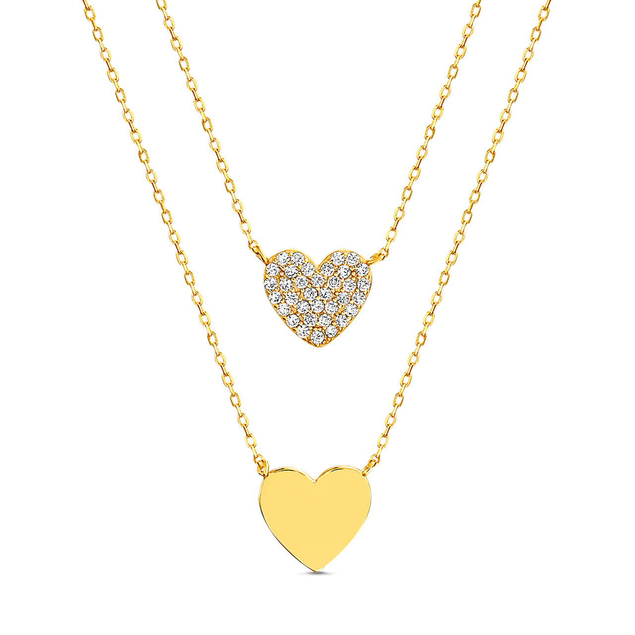 Lesa Michele Yellow gold Plated Sterling Silver Double Heart Necklace with Cubic Zirconia